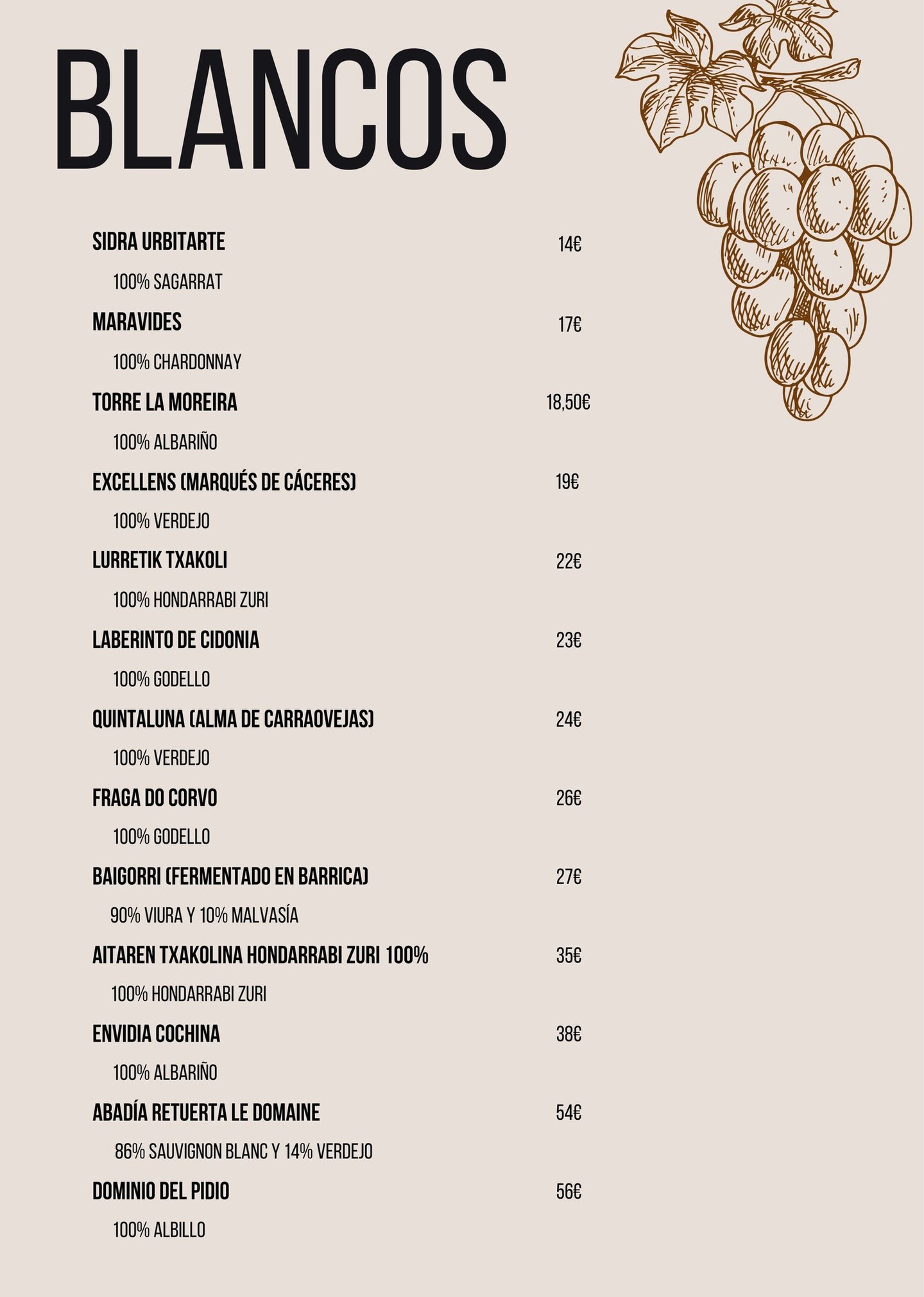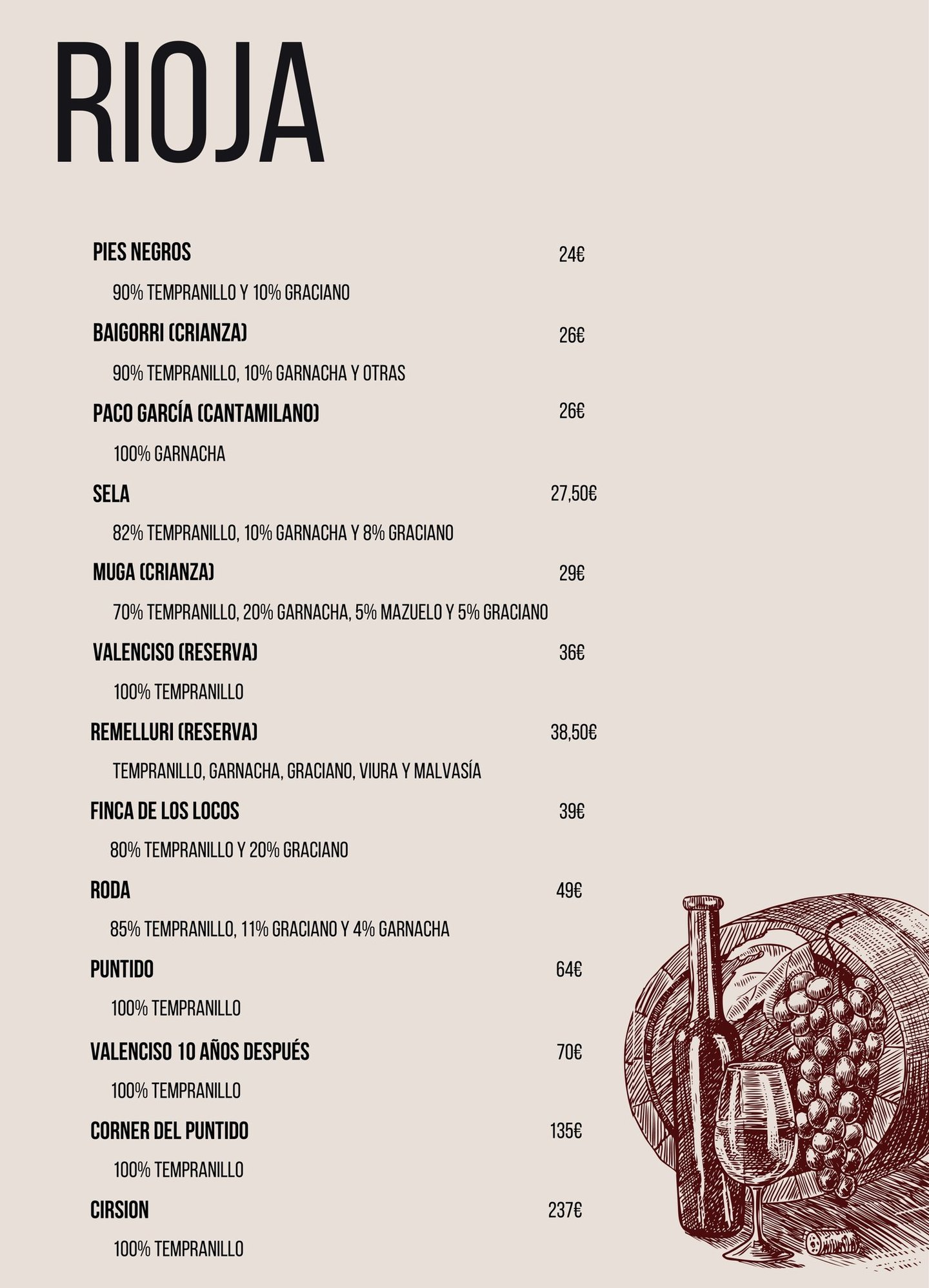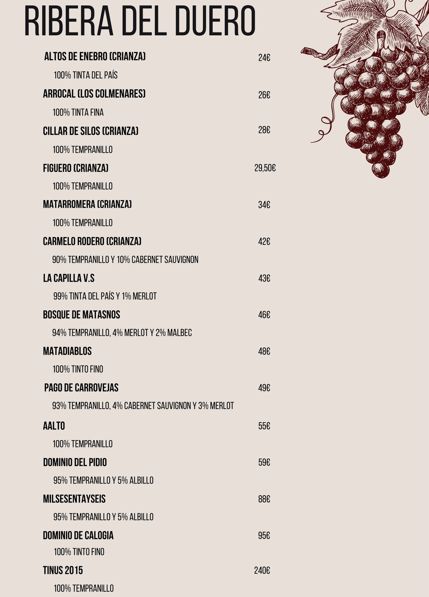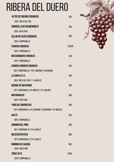 Carta de vinos